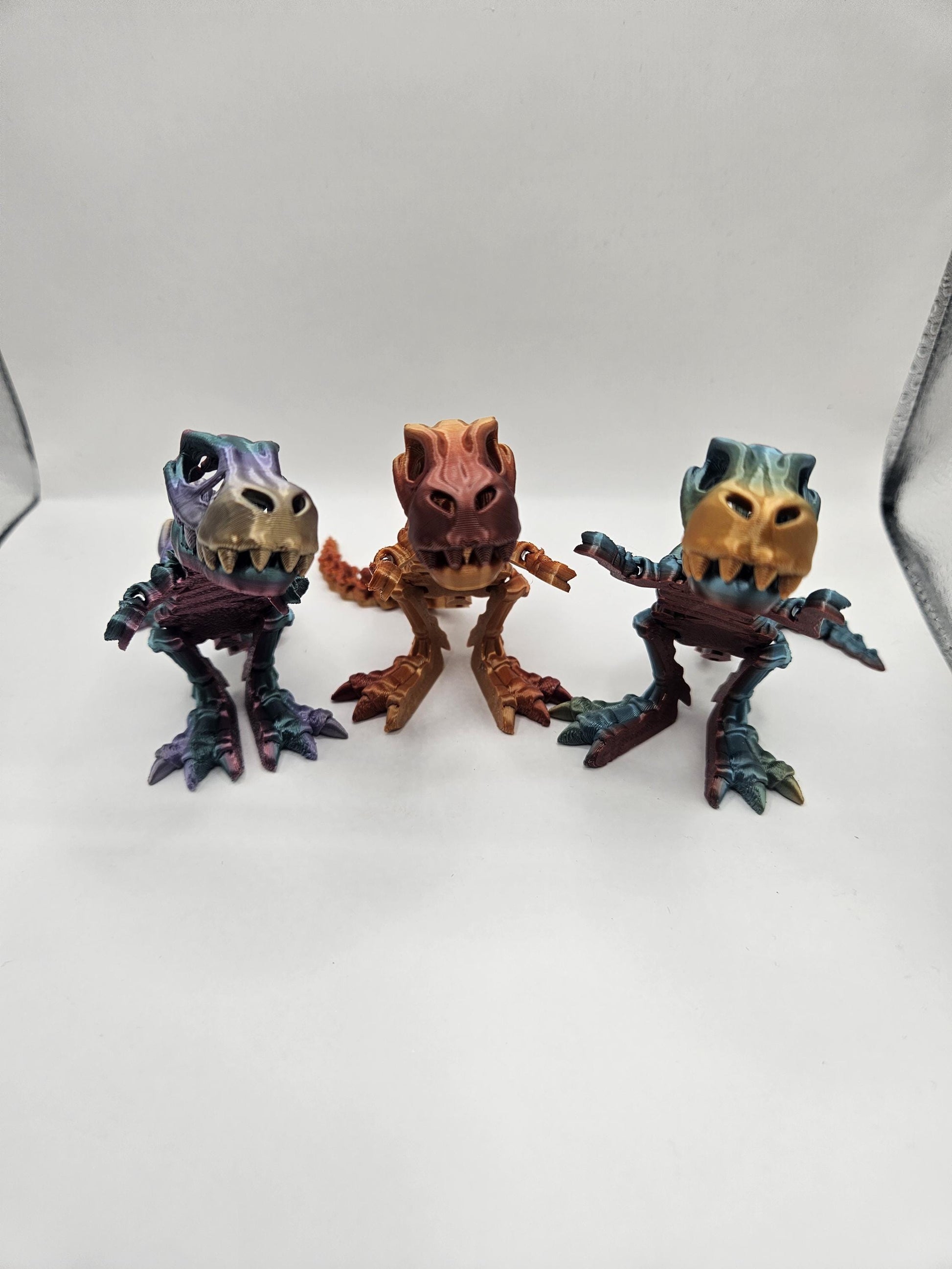 Metal Gradient Skeleton Dinosaurs designed by Flexi Factory, printed with PLA (a safe biodegradable material). Color gradients vary, do select the dinosaur you want and be surprised by the coloring you'll receive!