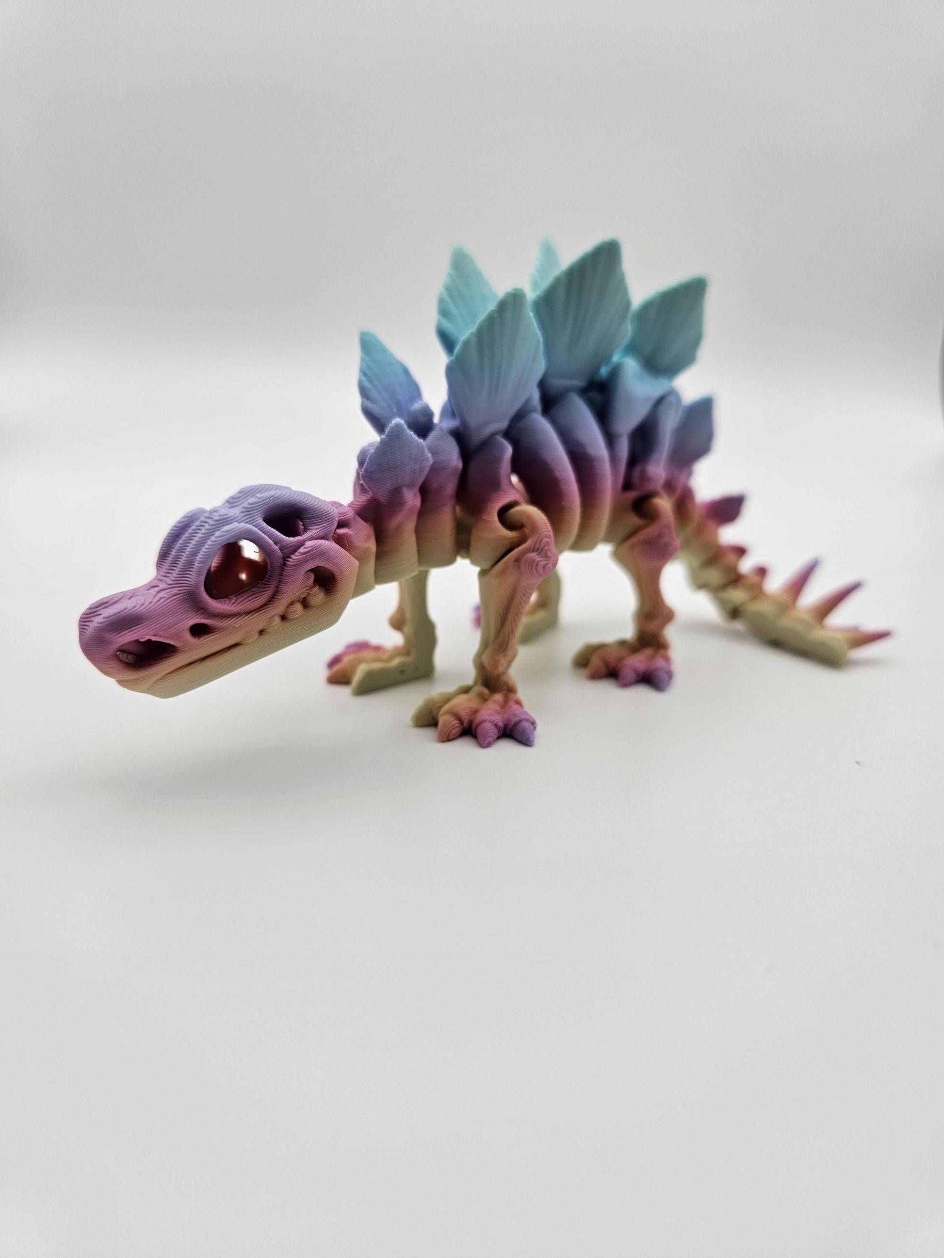 Skeleton Stegosaurus dinosaur designed by Flexi Factory, printed with PLA (a safe biodegradable material).
