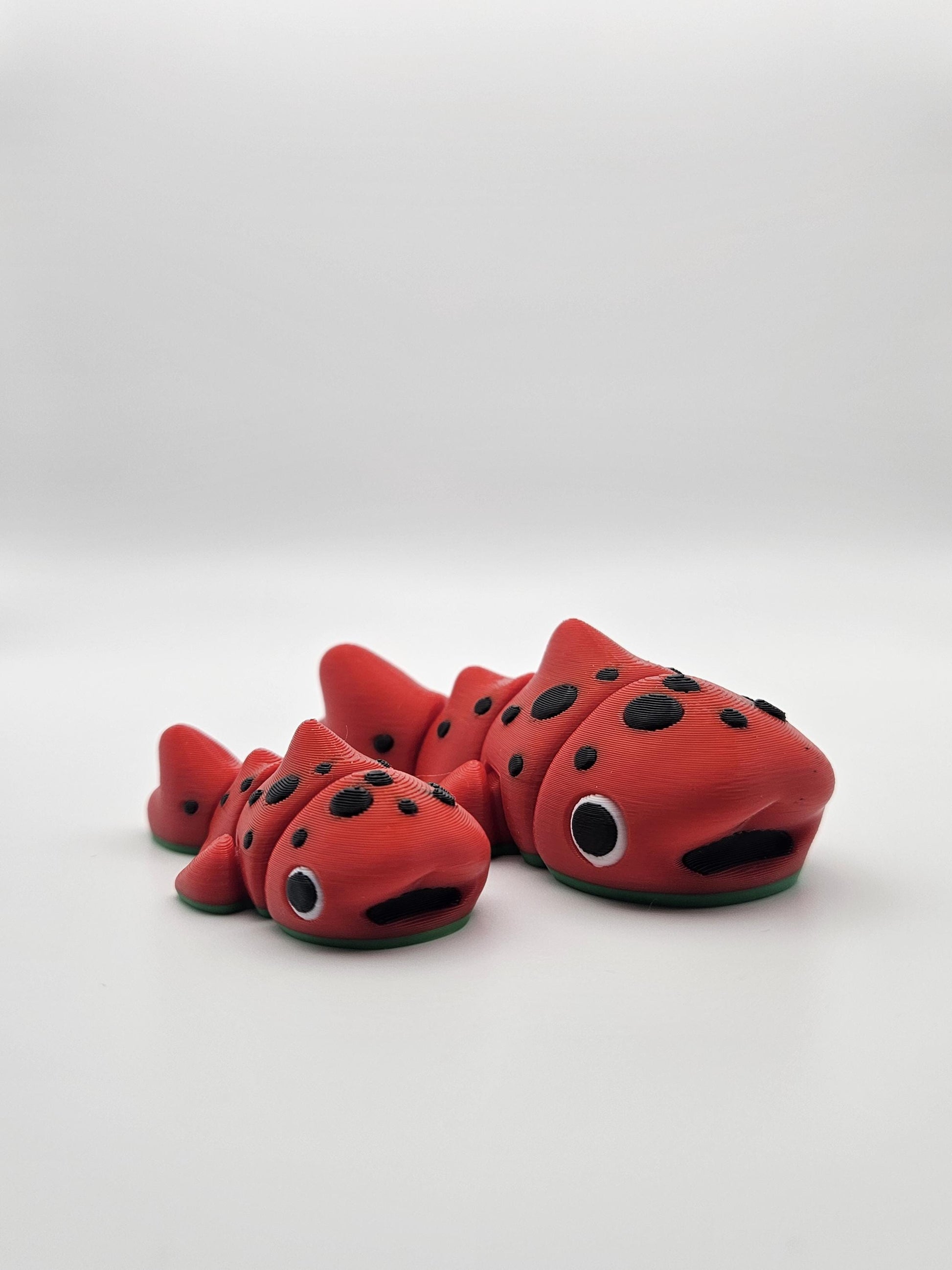 This 3D printed pocket-size watermelon whale shark fidget is designed by Layers In Green and printed with PLA (a safe biodegradable material).